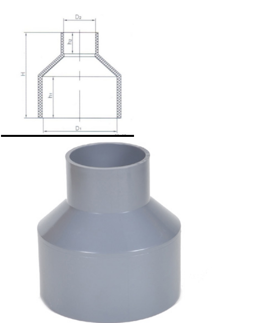 Descripción Reducción de diámetro / Conexión para tuberías PVC de diferentes diámetros